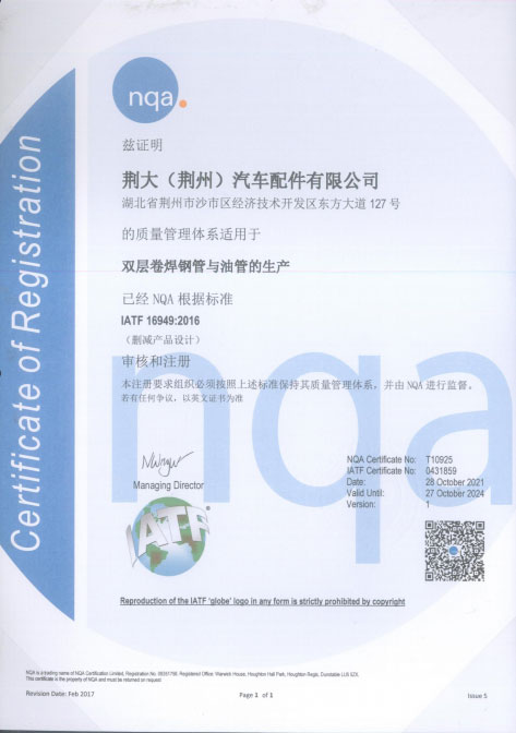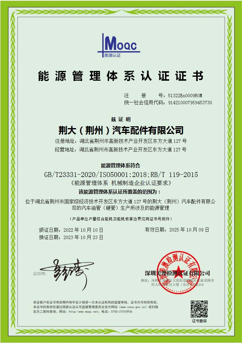 湖北省認定環(huán)保型汽車油管研發(fā)中心